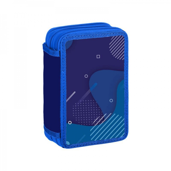Federtasche mit drei Reißverschlüssen und unzähligen elastischen Schlaufen.